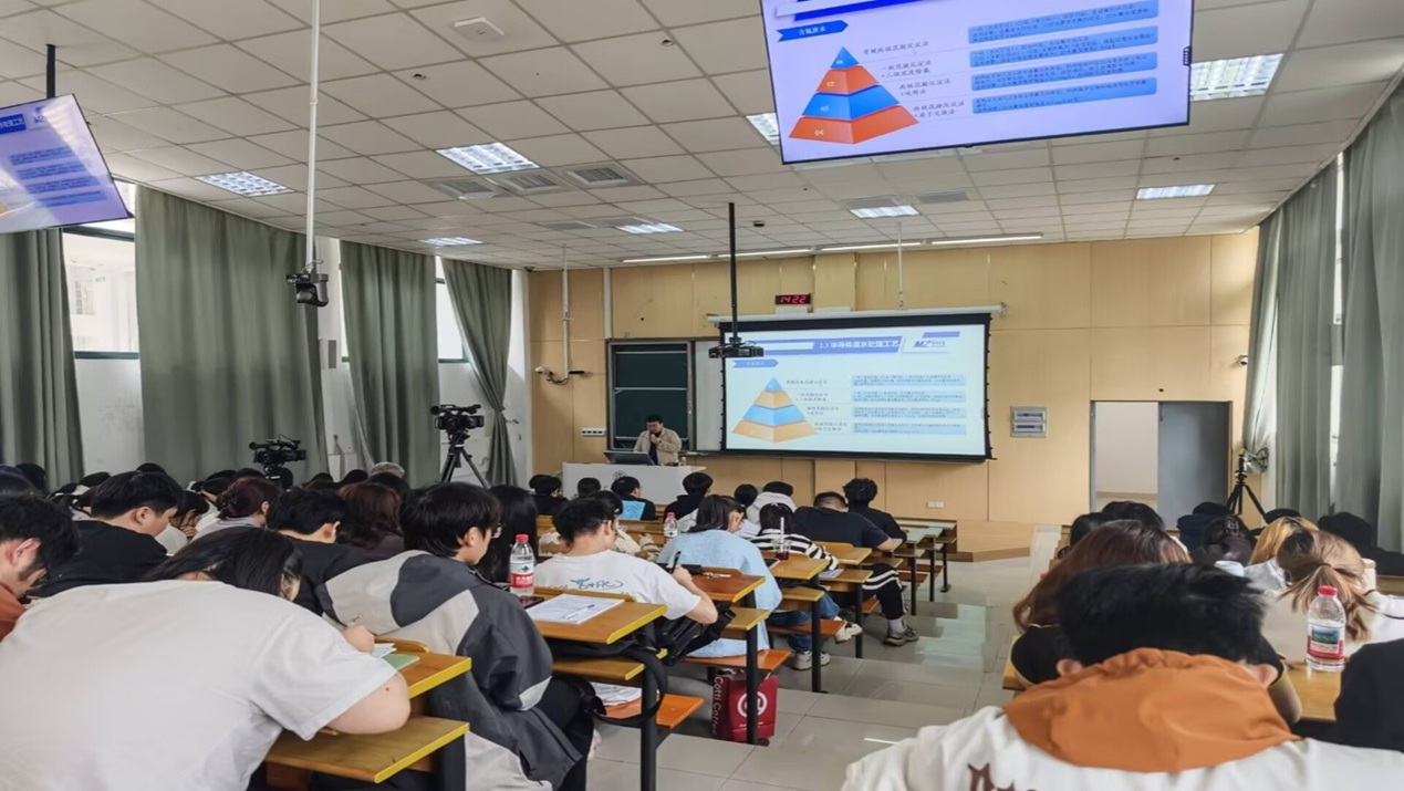 邀请苏州梦泽环境工程有限公司总经理、学院优秀校友聂青走进课堂,在石湖校区C5-203为环境工程专业23级学生带来题为《半导体行业废水处理工艺及案例分享》的专题授课,环工系师生共百余人参加本次活动。